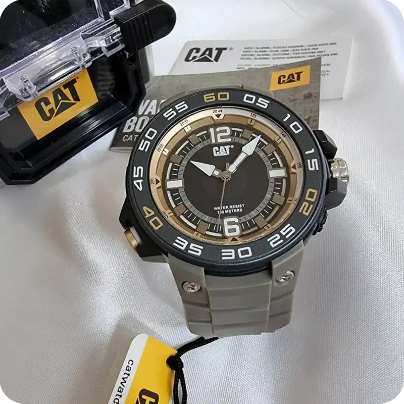 ساعت مچی مردانه CAT مدل P319029139 تجسمی از قدرت، مقاومت و طراحی مردانه است. الهامگرفته از سبک نظامی و ساخته شده برای افرادی که به دوام، استحکام و ظاهر قوی اهمیت میدهند. این مدل با قاب بزرگ، بند مقاوم و طراحی صنعتی، کاملاً حس ماجراجویی و جسارت را در هر شرایطی منتقل میکند.